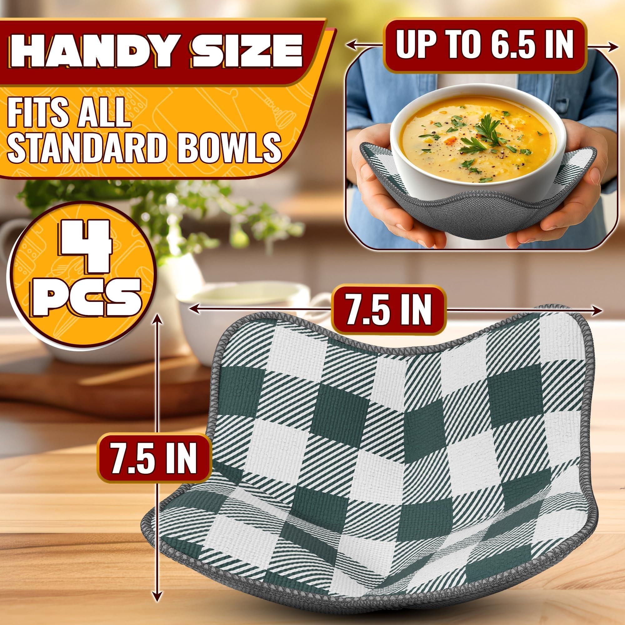 Home > 4 Pcs Microwave Bowl Cozy Holders Gray & White Checkered Heat Resistant Microwave Bowl Holders for Hot Food Protect Hands from Hot Dishes Soft Fabric