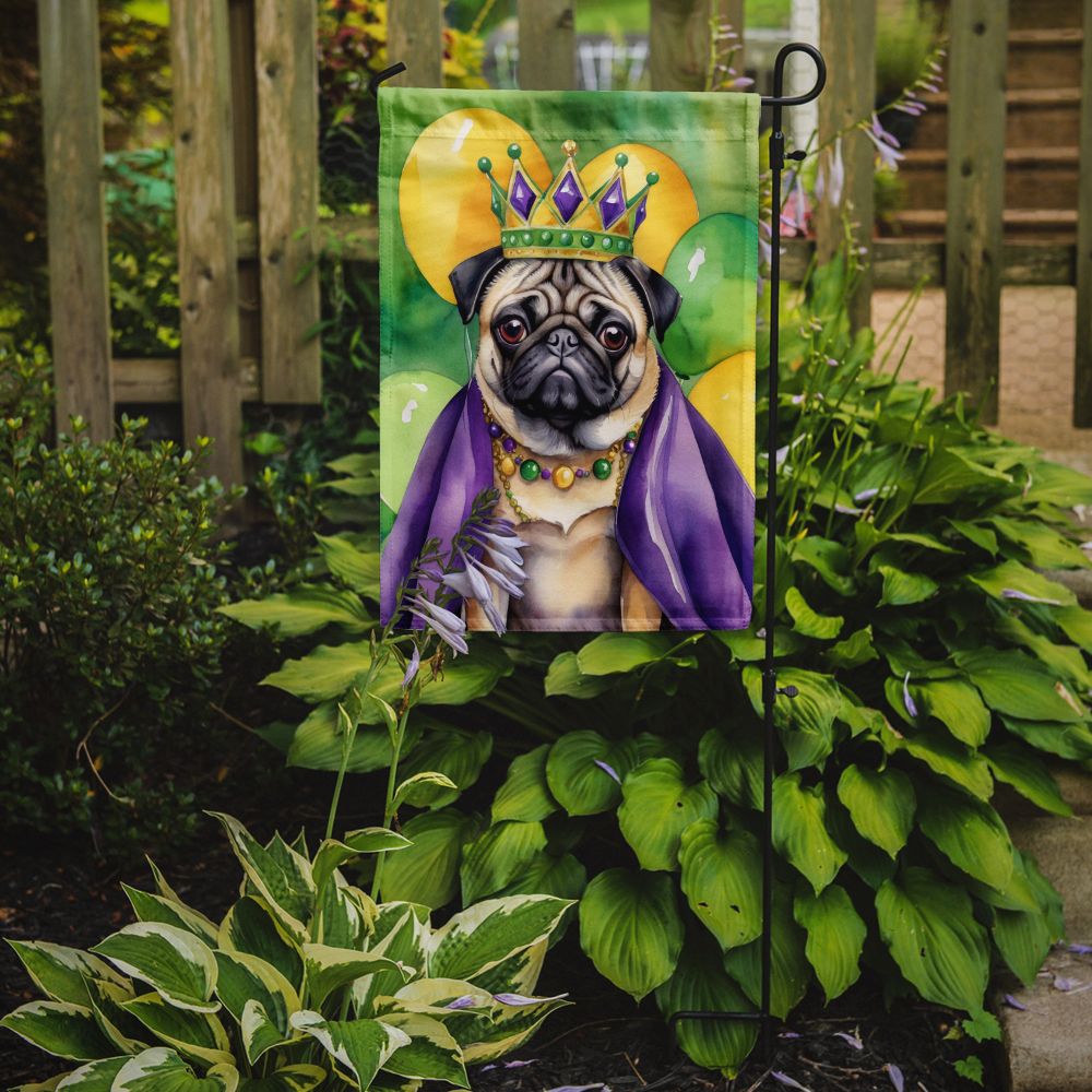 Garden Flag featuring breed specific Pug artwork. Celebrate Mardi Gras with this Mardi Gras Garden Flag. Enhance the beauty of your garden, patio, or yard with Caroline's Treasures Decorative Garden Flag, proudly made in the USA. Crafted from two pieces of thick, double-sided polyester fabric, this 2-ply garden flag is designed to withstand various weather conditions, making it water-resistant and weatherproof. Featuring correctly readable words on both sides, this garden flag offers a delightful visual experience from any angle. With its heavier weight, it stands out among other garden flags, ensuring stability and durability even in wind, rain, and snow. Measuring approximately 11 1/4 inches by 15 1/2 inches, this flag allows you to personalize your outdoor decor. It comes with a 1 1/2-inch sleeve sewn in, allowing easy attachment to any standard garden flag stand or garden size porch hanger (sold separately). Make a statement in your outdoor space with Caroline's Treasures Decorative Garden Flag, a vibrant and high-quality flag that adds color and personality to your surroundings. Proudly made in the USA, it's a symbol of quality craftsmanship and attention to detail.