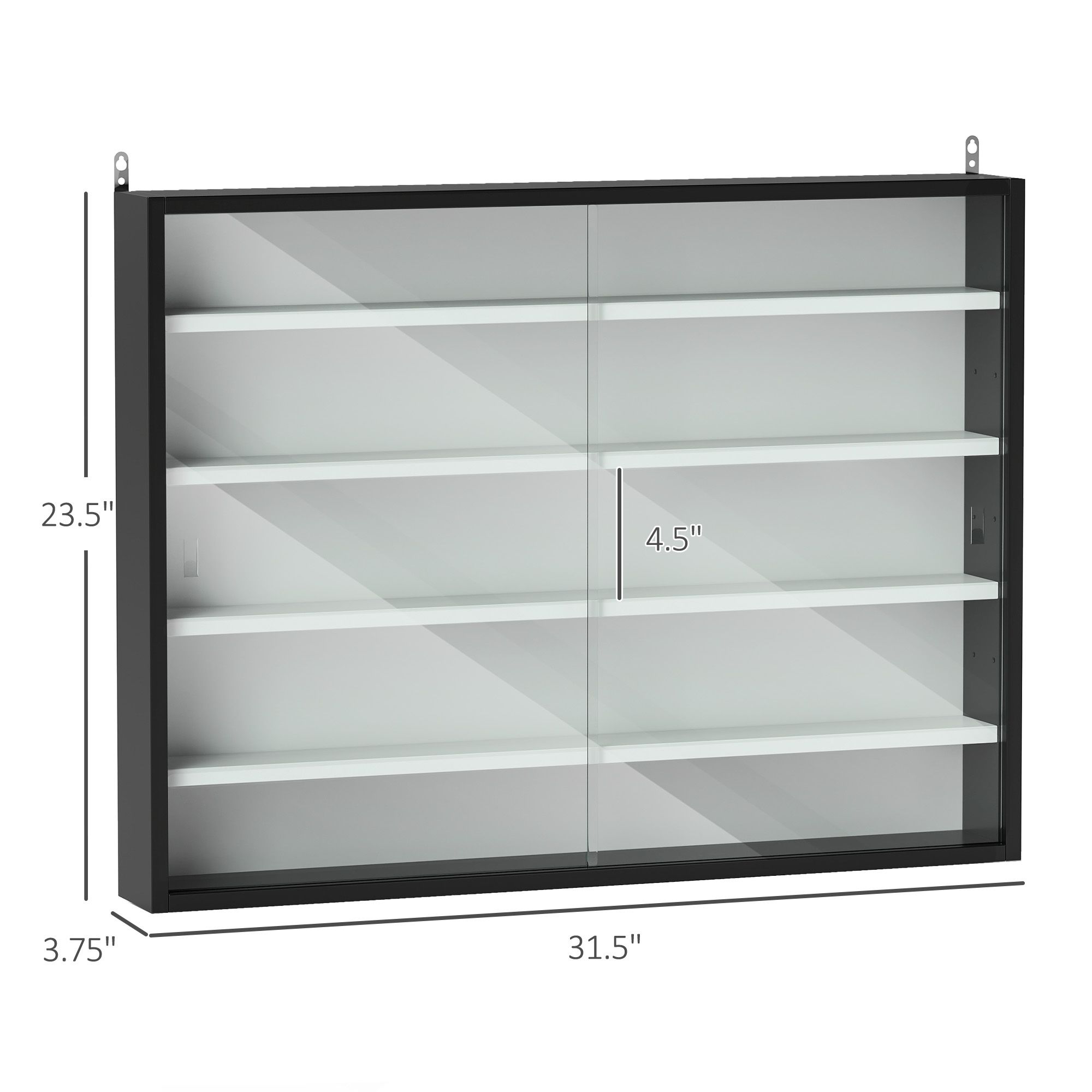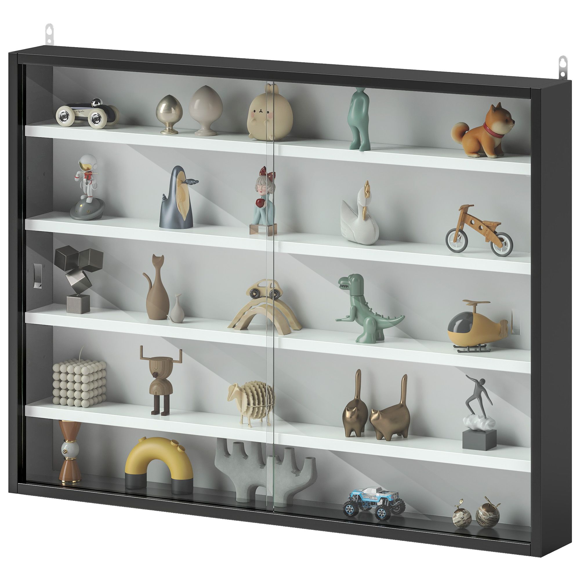 Display Cabinet 5-Tier Black White Glass Case with 2 Doors Adjustable Shelves Wall-Mounted Display Cabinet 5-Tier Black White Glass Case with 2 Doors Adjustable Shelves Wall-Mounted Display Cabinet 5-Tier Black White Glass Case with 2 Doors Adjustable Shelves Wall-Mounted