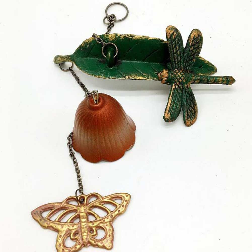 Home > Bamboo Leaves Dragonfly Cast Iron Wind Chimes Hanging Ornament Butterfly Antique Metal Doorbell Decoration, Orange