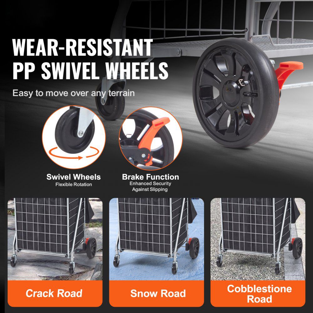 200lb Industrial Folding Cart - Reinforced Grocery Hauler with Removable Bag & 4 Swivel Wheels for Warehouse/Market Use
