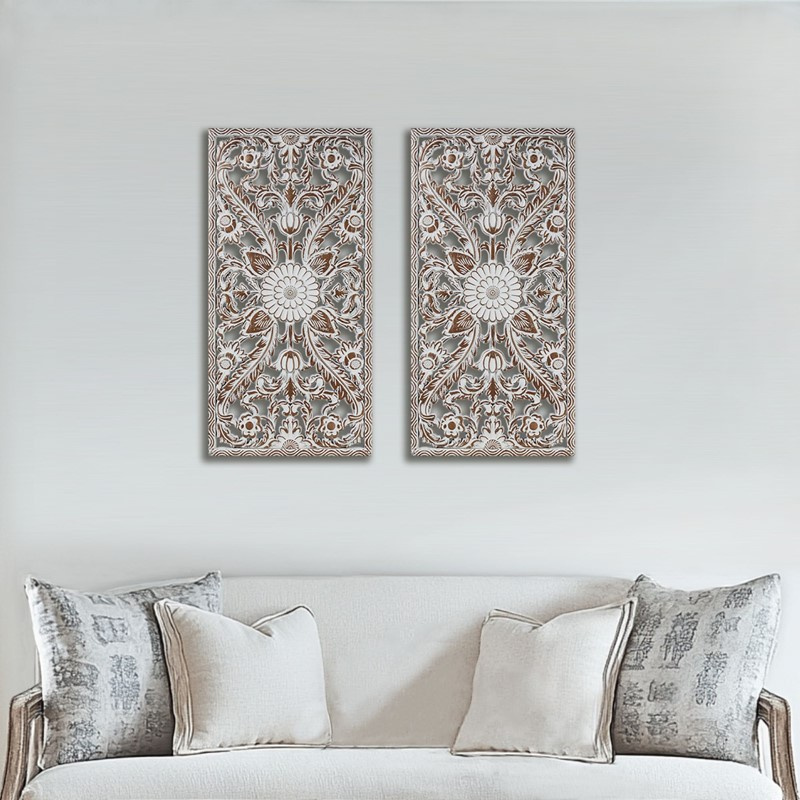 Home > 2 PCS Botanical Panel Distressed Carved Wood Wall Decor Set