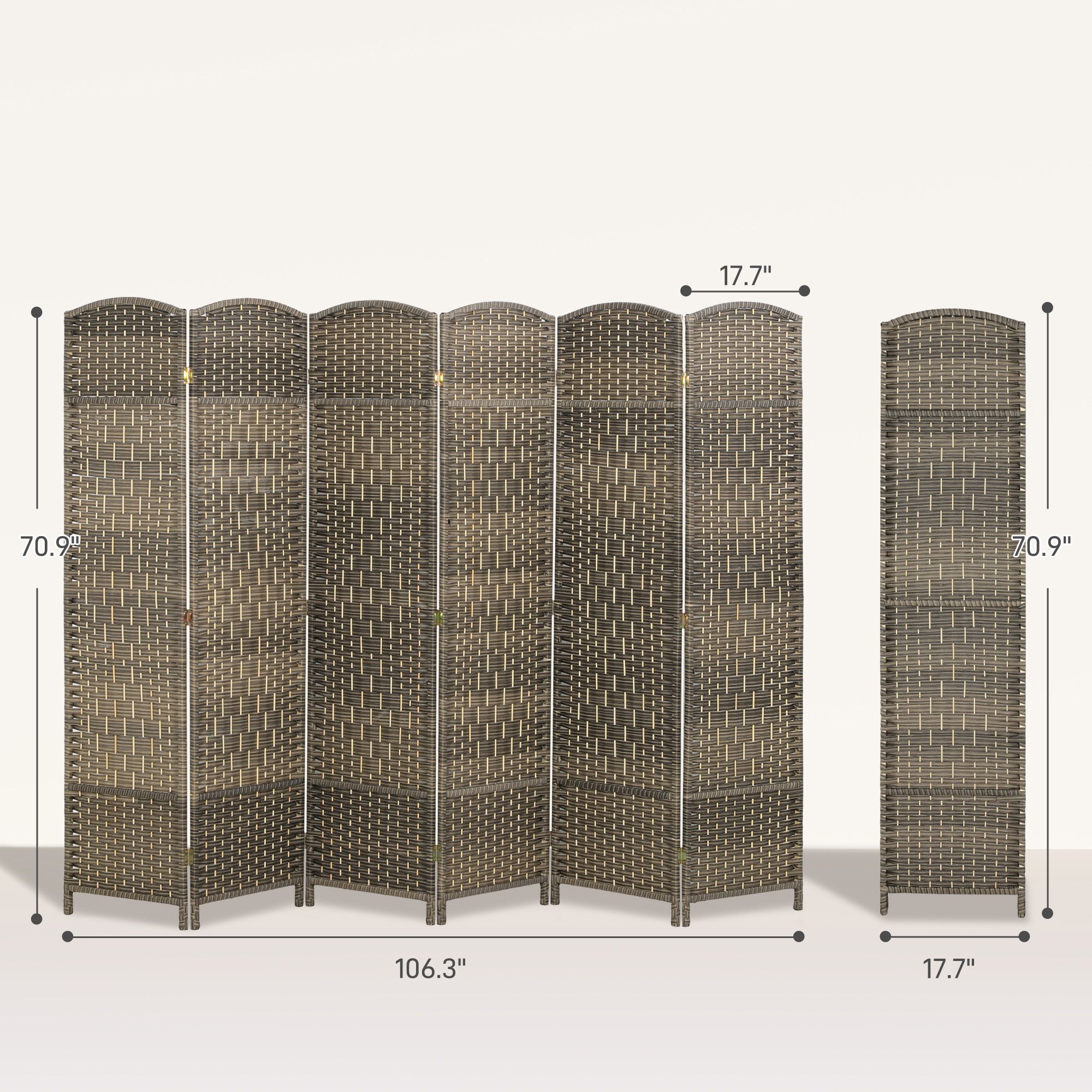 Transform your space with ease using the room divider screen from HOMCOM. Its polypropylene makeup ensures superior privacy and unmatched strength compared to traditional paper fiber. This portable wall marries functionality with fashion via a stylish six-panel folding design accented by fifteen metal hinges. An elegant arched pine wood frame and polypropylene weave make the HOMCOM folding screen a chic partition for privacy.
